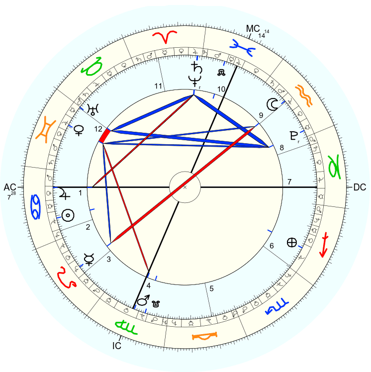 Giove qui senz’altro domina la carta governando tra l’altro l’Ascendente per esaltazione, il Medio Cielo per domicilio e confine, e ancora per confine entrambi i luminari; tuttavia vediamo anche che Saturno e Marte sono entrambi angolari e bellicosi rendendo nel complesso questo cielo piuttosto dinamico. Soprattutto Saturno si fa sentire in quanto pianeta più alto sull’orizzonte, governatore del segno lunare ed in aspetto disarmonico di quadrato a Giove (per fortuna ormai piuttosto largo). Anche in questo grafico quindi vediamo che Giove, in questo ciclo, non è libero di agire al 100% delle sue potenzialità.